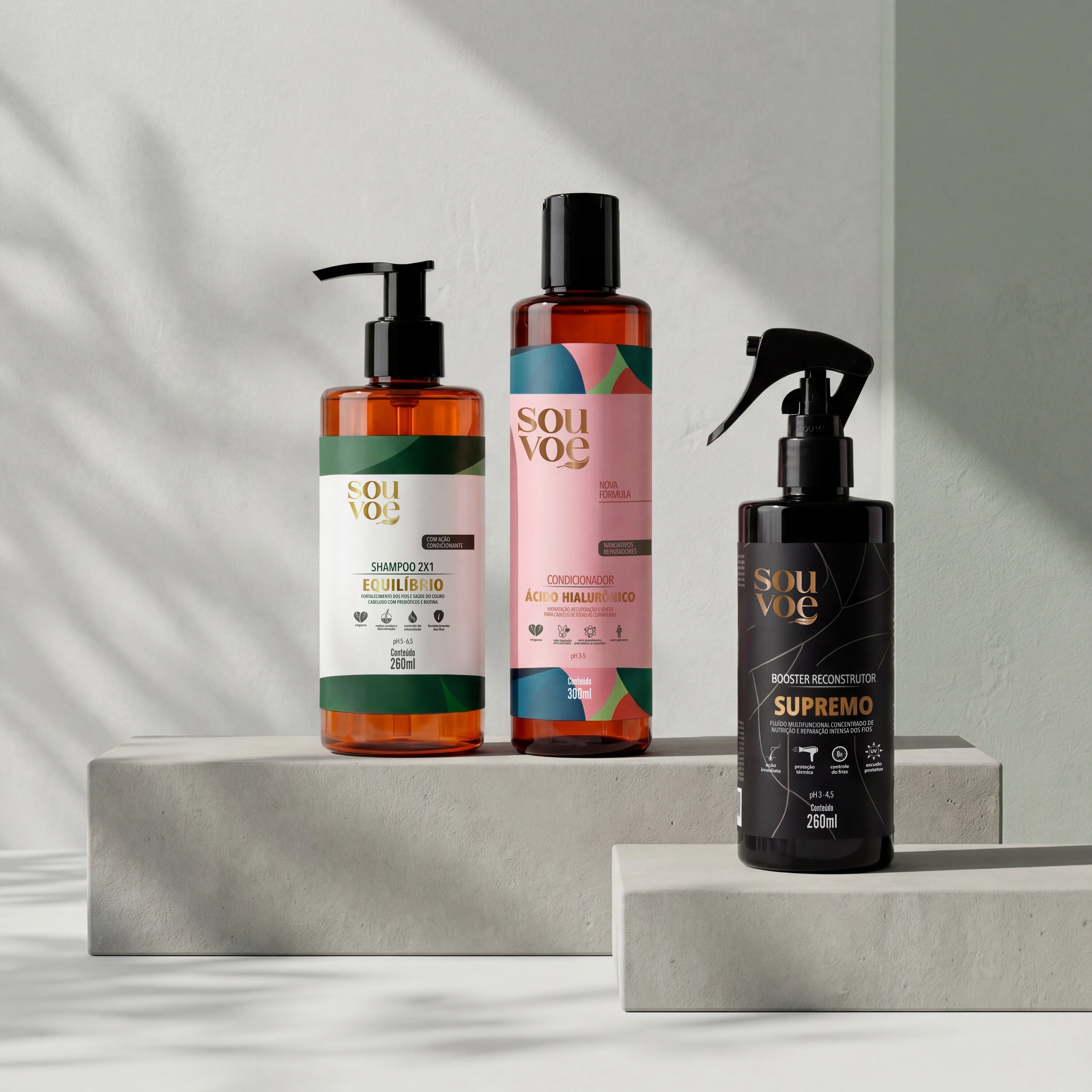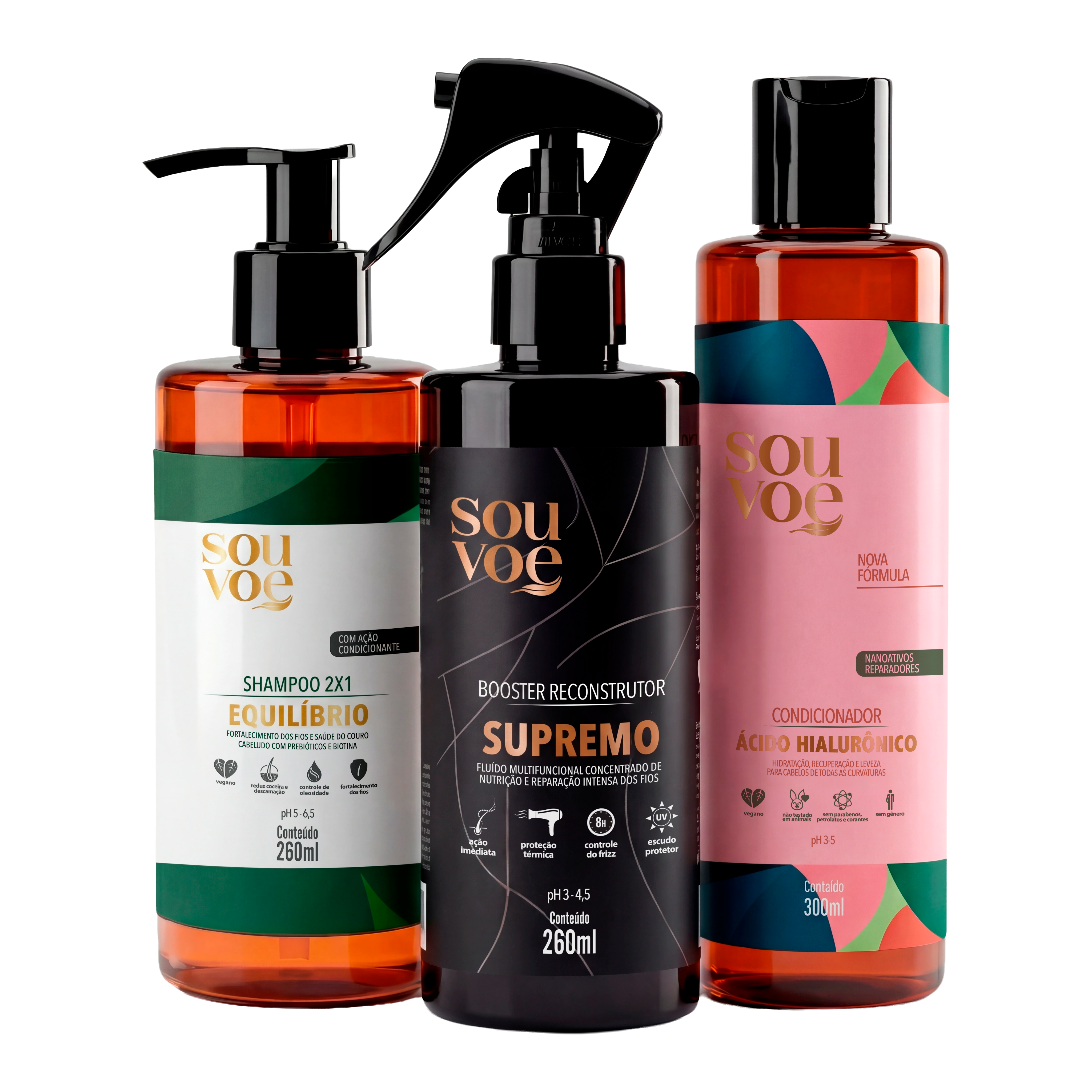 O Booster Reconstrutor Supremo de 260ml é de fácil aplicação, pode ser usado todos os dias com os cabelos úmidos ou secos. Reconstrói os fios, elimina pontas duplas, protege dos efeitos do sol e de fontes de calor (como secador e chapinha) e controla o frizz por até 8 horas.