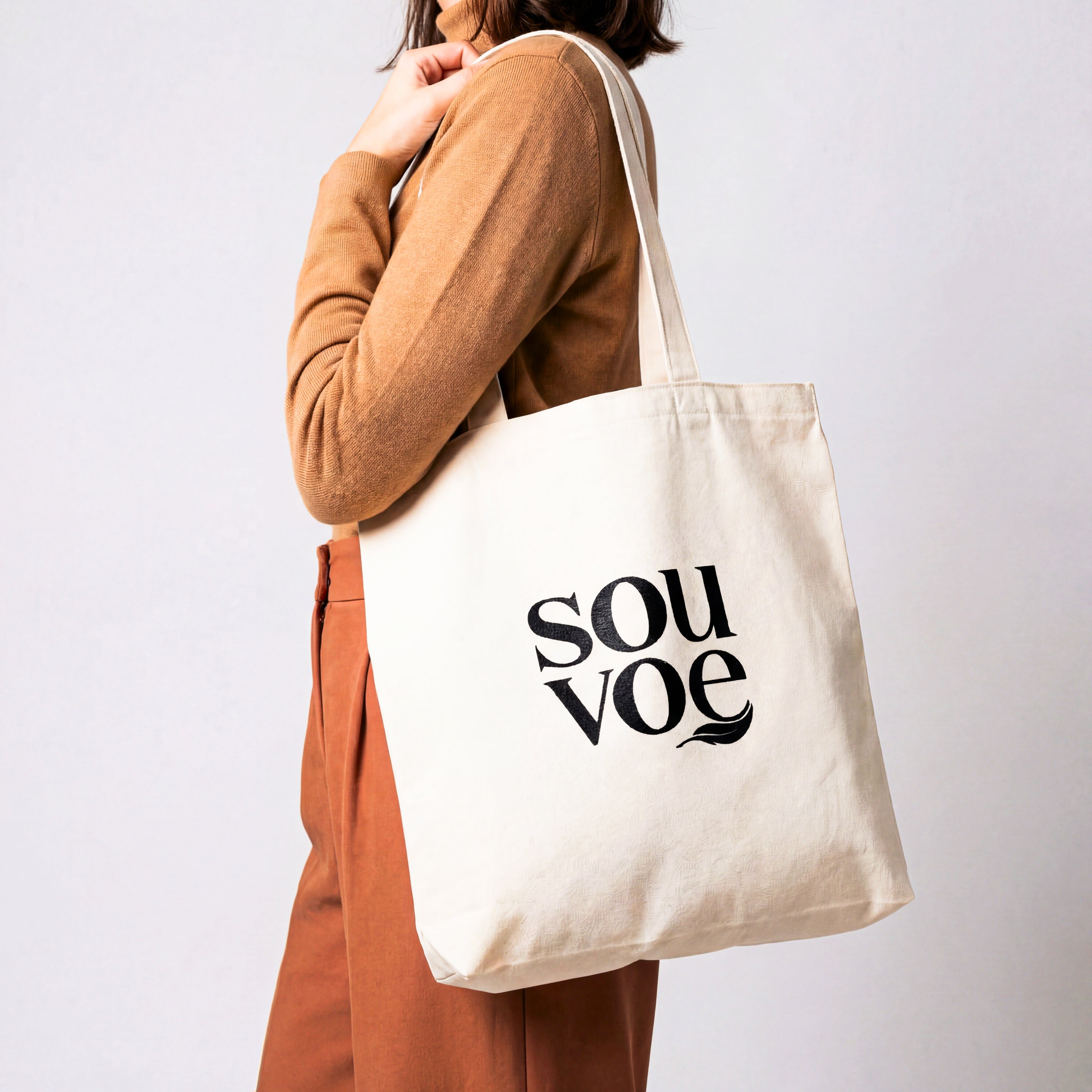 Ecobag feita em algodão cru com alça para você levar com você em todos os lugares.